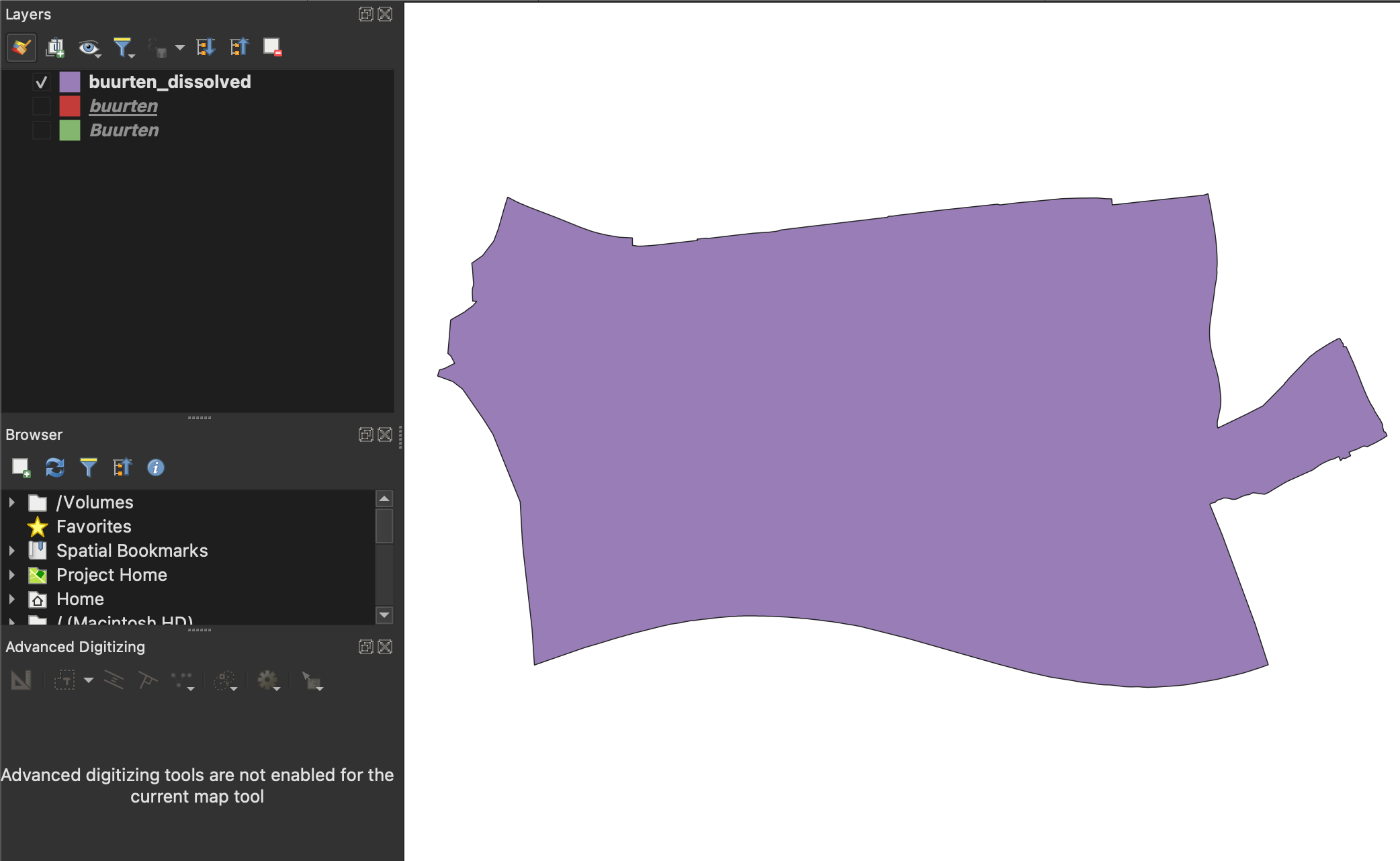 buurten - Leave “Dissolve field(s)” empty (this will dissolve all features into one polygon representing the entire study area)