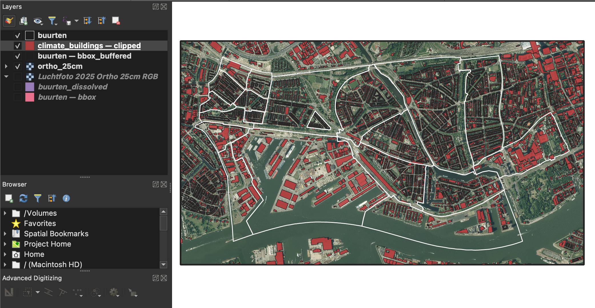 buurten(neighbourhood boundaries - should be visible as outlines)climate_buildings_clipped(climate data polygons)bbox_buffered(buffer outline - optional, can be hidden)ortho_25cm.tifor the WMTS aerial photo layer (at the bottom as background)