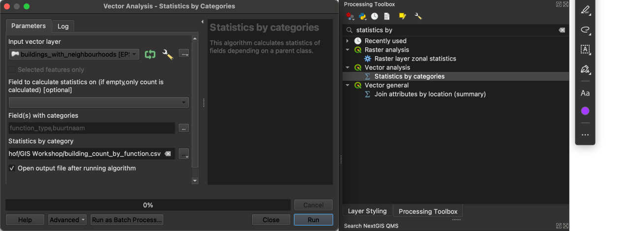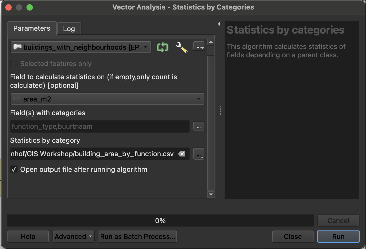 💡 Tip: If you want to keep only buildings within neighborhoods, you can export the selection as a new layer: Right-click buildings → Export → Save Selected Features As...