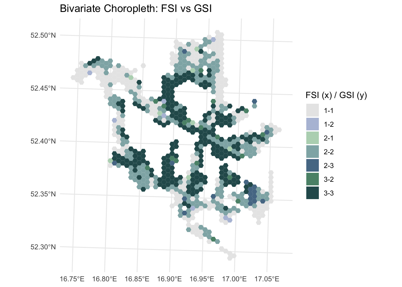 However, while the strengths of this data centric process are clear, the analysis must be approached with a critical eye. Much of the spatial data used, particularly in the case of Poznan is from OSM and is naturally crowd-sourced which varies in levels of completeness and sometimes accuracy.